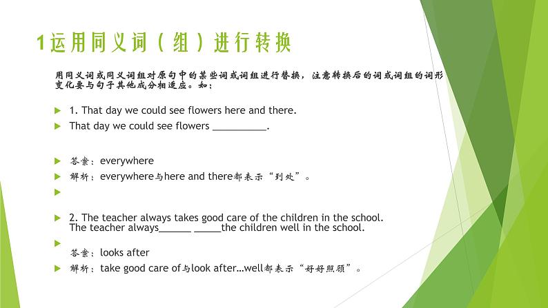 1运用同义词(组)进行转换