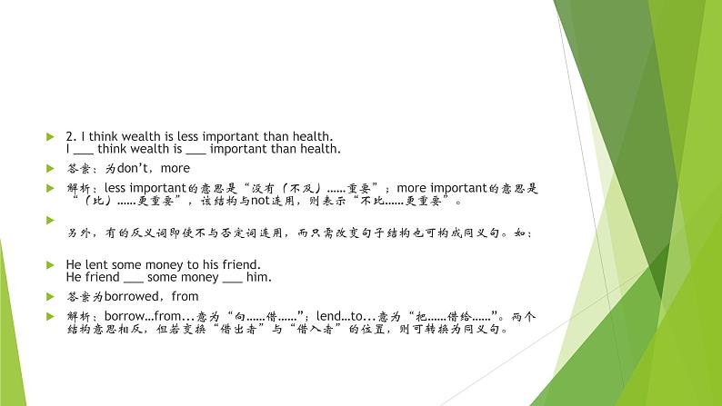 2运用反义词(组)的否定式进行转换
