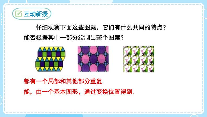 仔细观察下面这些图案,它们有什么共同的特点?能否根据其中一部分绘制出整个图案?