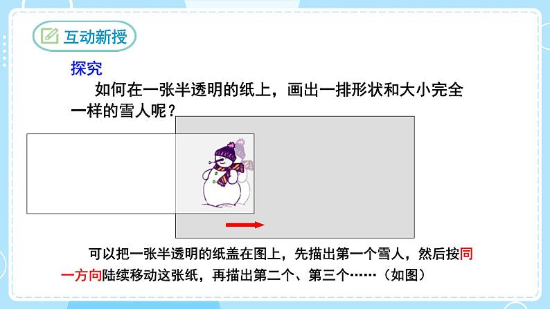探究 如何在一张半透明的纸上,画出一排形状和大小完全一样的雪人呢?