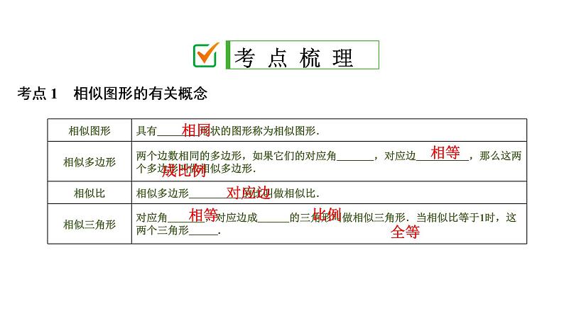这是一份初中数学中考复习 第2部分 第8单元 第25课时 相似形课件PPT