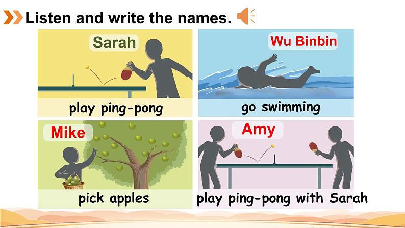 这是一份英语Recycle 1一等奖教学ppt课件,文件包含Recycle1第1课时pptx、Listenandwritethenameswav、Myweekendmp4等3份课件配套教学资源,其中PPT共25页, 欢迎下载使用。