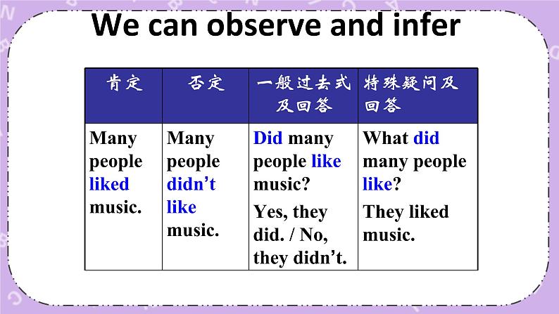 初中—英语—七年级下册—Unit 5 Now and Then—Lesson 14 My First DayUnit 5 Lesson 14第2课时教学设计 基本信息课题Unit 5 Lesson 14 My First Day学科英语年级七年级教材北师大版《初中英语》七年级(下)设计教师 指导教师 教材分析本课是北师大版《初中英语》七年级下册教材第五单元第14课,话题为情感和情绪。本课是本单元的第2课,在承接第一单元有关谈论社区今昔对比变化话题的基础上,主要谈论上学第一天的情景以及当时的情绪与感受,为下一课谈论自己学习的经历做铺垫,同时为本单元的综合语言输出奠定初步的语言基础,起到了承上启下的作用。另外,本节课的功能项目为运用一般过去时谈论过去,该时态在初中阶段至关重要。 本课的教学设计分为两个课时。第一课时侧重对故事的理解和对语言的梳理。引导学生通过阅读故事,感受通过阅读获取情绪和情感信息的阅读策略,感悟由行为动词构成的一般过去时的意义及用法和谈论过去事情并表达情绪感受的功能意念,最终达到能初步运用所学习的语言,谈论过去发生的事情及自己当时的感受。第二课时在对课文内容和语言进一步巩固的基础上,复习、梳理本课的重点语法——行为动词规则过去式的构成、意义及用法。学生通过观察和分析例句,总结、归纳其意义和用法;通过在语境中进行多层面的练习,巩固理解其意义和用法。最后能够在语境中恰当地使用谈论过去的功能用语来描述过去发生的事情和表达自己的感受。教学内容话题:情感和情绪 词汇:loud, forget, another, slowly, junior, junior high school 行为动词过去式的构成、意义及用法 策略:观察、归纳、总结的学习策略 功能:谈论过去教学目标在本课学习结束时,学生能够: 1.在语境中发现、体会和归纳出行为动词规则过去式的构成及一般过去时的用法和表意功能。 2.通过采访活动,在语境中正确运用一般过去时来表述自己过去的事情及感受。教学重难点重点:学生通过观察,能够归纳总结出行为动词规则过去式的构成及一般过去时的用 法和表意功能。 难点:学生能够在采访活动中,正确运用一般过去时介绍自己第一天初中生活中发生的事以及自己的感受。教学过程 教学活动设计意图互动模式&时间ReviewStep 1l Ss review the stories through two competitions—Who is the quickest? (1. Find the opposites in the text. Ex.4; 2. Find the past form of all of the verbs in the stories.) l Ss work in pairs to check their answers, then together. l T asks Ss to talk about the past form and figure out the rules. l Ss show their ideas about the rules.通过两个竞赛活动,复习课文的信息和语言,引导学生发现、归纳行为动词规则过去式的构成及发音规则。IW CW PW 12’GrammarStep 2l Ss give more examples according to the rules. (Ex.6) l Ss follow the examples and complete the sentences. (Ex.5) l Ss discuss the sentences in Ex.5 in groups and share what they’ve found in this part.学生根据总结归纳出的过去式的规则,写出更多的例子。 运用观察到的规则完成句子,练习其用法。 学生通过小组讨论,从Ex.5中发现总结出含有行为动词的一般过去时的否定句的构成,并由此推断出一般疑问句的构成与回答,以及特殊疑问句的构成与回答。IW CW GW 15’Step3l Ss complete the paragraph with the correct form of the verbs. (Ex.7) l Ss check the answers and talk about when and how to use the past form of verbs. l T asks Ss to do Ex.2 on P95. l Ss check the answers in pairs.在文段情境中练习巩固行为动词规则过去式的构成及用法。 结合练习,总结一般过去时的用法。 综合运用所学Be的过去式和行为动词的过去式,完成较长语篇层面的练习,进一步体会一般过去时的语用功能。 SpeakingStep 4l T asks Ss to role-play an interview in pairs. One is the radio station host of school and the other is the monitor of Class 1. Example: Do you still remember your first day at your junior high school? How did you feel? What did you wear? What did you bring with you? Did you know anyone? … l Ss share their interviews in class.创设真实情境,使学生运用所学的一般过去时来描述自己过去的行为方式及感受。 学生在语境中体验一般过去时的语用功能。PW CW 10’PronunciationStepl T presents tongue twisters to the whole class to get Ss to focus on the /h/and/j/sound and interest Ss. l Ss listen and write the words in the correct group. (Ex.9) l Ss listen again and read aloud with the recording. (Ex.10)熟悉/h/和/j/的发音。CW IW 7’Homework 1’1. Write down the interview you made in your exercise book. 2. Do Exs.1,3,4 on p95 in the workbook.