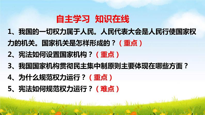 这是一份政治 (道德与法治)治国安邦的总章程课前预习课件ppt,共21页。PPT课件主要包含了国家监察机关,②③④等内容,欢迎下载使用。