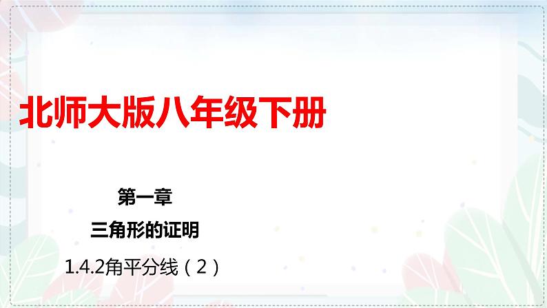 这是一份八年级下册4 角平分线一等奖课件ppt