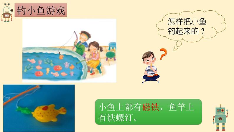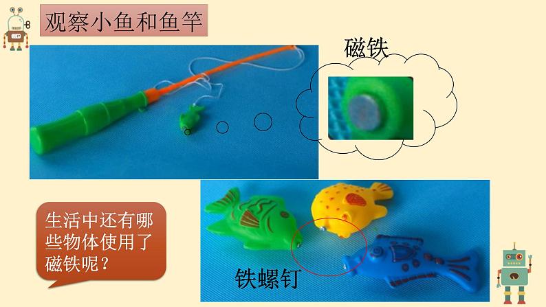 小鱼上都有磁铁,鱼竿上有铁螺钉。