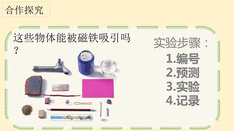 这是一份教科版 (2017)二年级下册1.磁铁能吸引什么示范课ppt课件,共17页。PPT课件主要包含了磁铁能吸引什么,你们发现了什么等内容,欢迎下载使用。