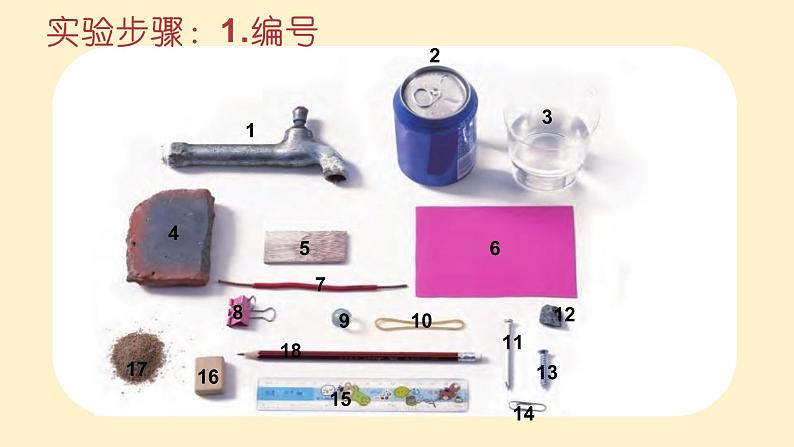 实验要求:用磁铁轻轻接近物体,观察物体是否被磁铁所吸引。每种物体应该重复测三次。