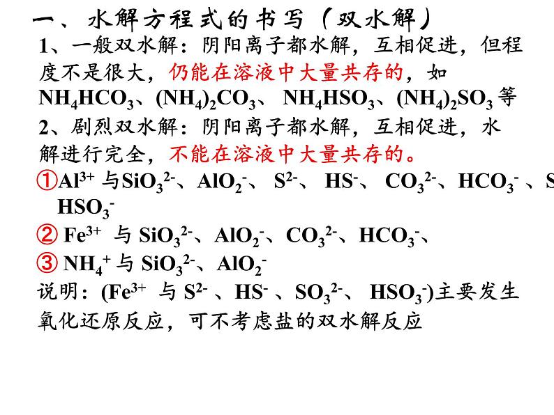 一、水解方程式的书写(双水解)