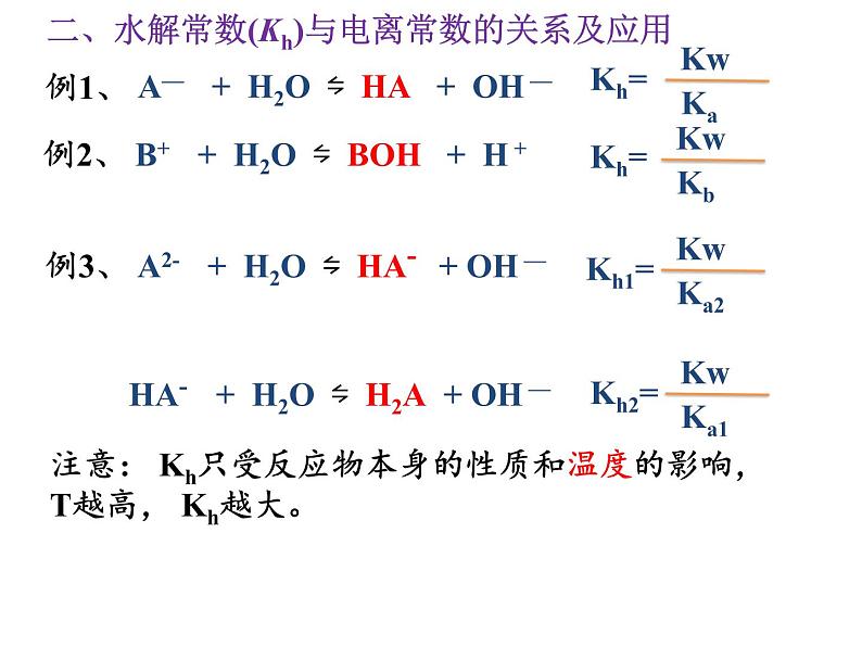 二、水解常数(Kh)与电离常数的关系及应用