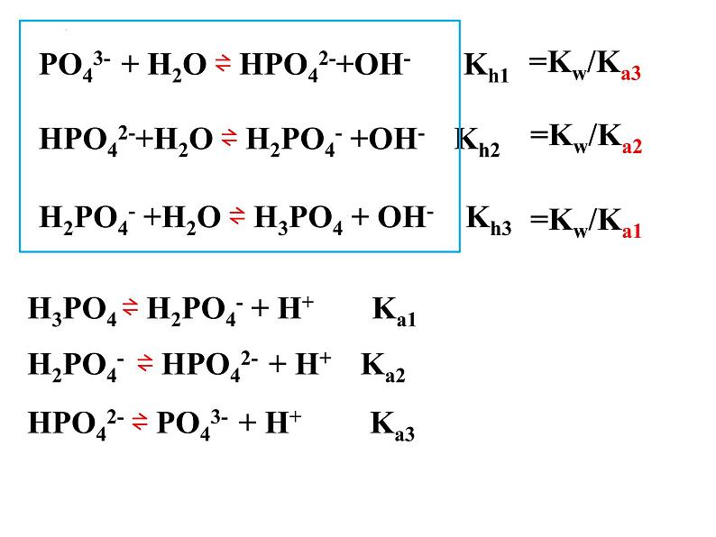 H3PO4 ⇌ H2PO4- + H+ Ka1H2PO4- ⇌ HPO42- + H+ Ka2HPO42- ⇌ PO43- + H+ Ka3