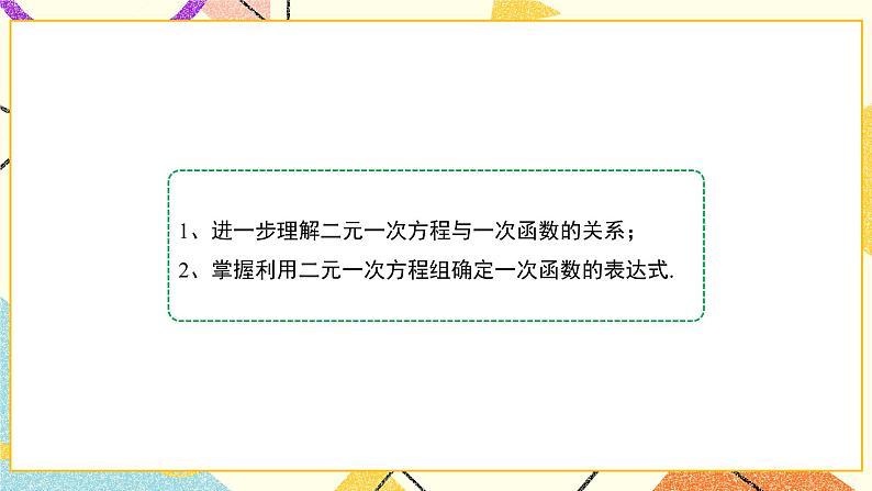 这是一份初中北师大版第五章 二元一次方程组6 二元一次方程与一次函数背景图ppt课件,共6页。