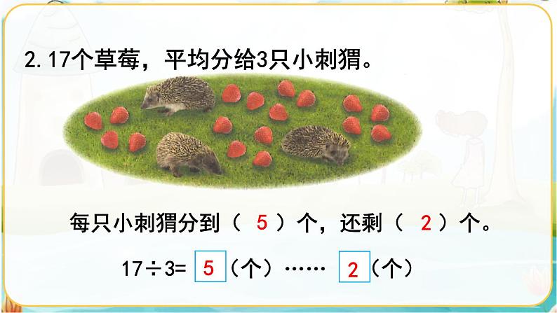 12.有12个羽毛球。平均分给5人,每人分( )个, 还剩( )个。