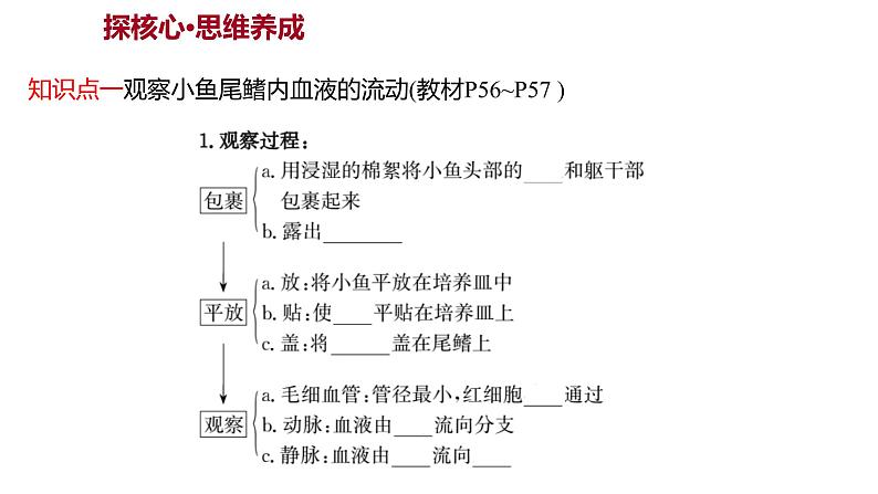 知识点一观察小鱼尾鳍内血液的流动(教材P56~P57 )
