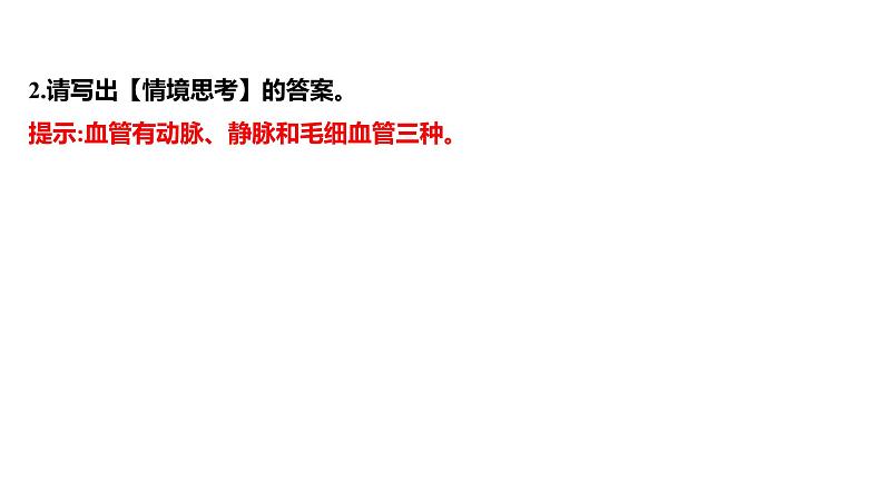 2.请写出【情境思考】的答案。提示:血管有动脉、静脉和毛细血管三种。