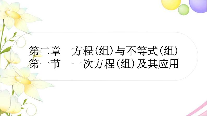 中考数学复习第二章方程(组)与不等式(组)第一节一次方程(组)及其应用作业课件: 这是一份中考数学复习第二章方程(组)与不等式(组)第一节一次方程(组)及其应用作业课件,共18页。