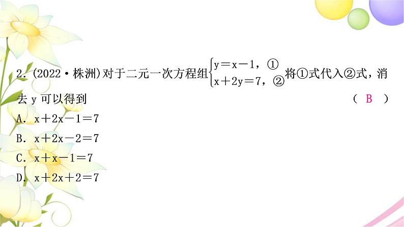 中考数学复习第二章方程(组)与不等式(组)第一节一次方程(组)及其应用作业课件