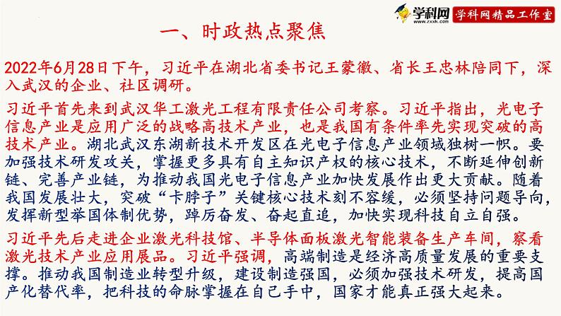 初中政治中考复习 热点一:习近平在湖北武汉考察中考命题思考-备战2023年中考道德与法治时政热点与教材学习课件PPT