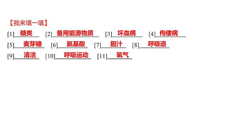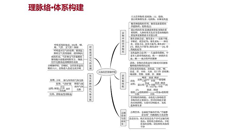 中考生物复习七年级下册第四单元生物圈中的人第二章人体的营养教学课件: 这是一份中考生物复习七年级下册第四单元生物圈中的人第二章人体的营养教学课件,共31页。PPT课件主要包含了备用能源,生长发育,佝偻病,骨质疏松症,缺铁性贫血,有机物,夜盲症,神经炎,坏血病,消化道等内容,欢迎下载使用。