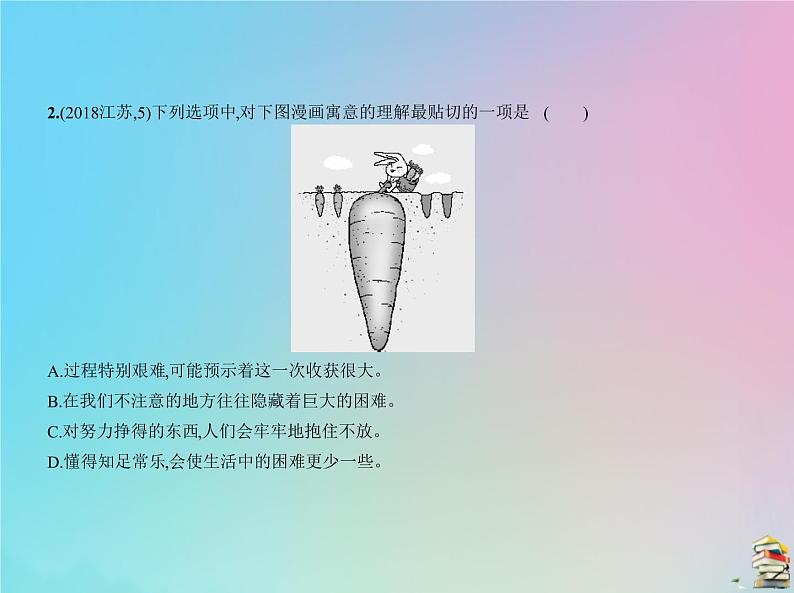 这是一份新高考语文2020版高考语文大一轮复习专题六图文转换课件,共60页。PPT课件主要包含了专题六图文转换,解题锦囊,对点例证,对点小练,考向二图表,考向三徽标,考向四漫画,考向五图片,图片转换“两要诀”等内容,欢迎下载使用。