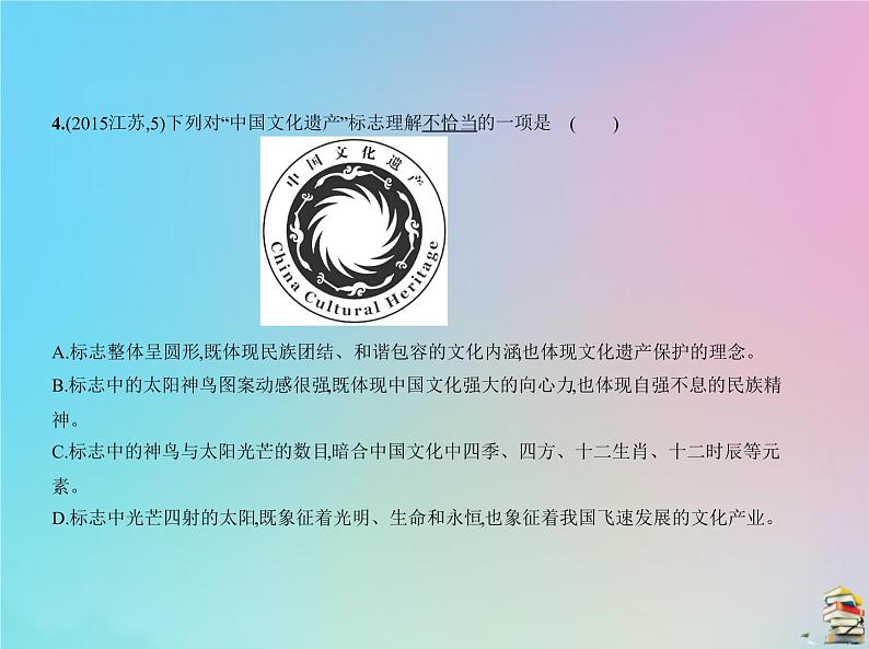 这是一份(全国版)高考语文一轮复习课件专题六图文转换 (含详解),共60页。PPT课件主要包含了专题六图文转换,解题锦囊,对点例证,对点小练,考向二图表,考向三徽标,考向四漫画,考向五图片,图片转换“两要诀”等内容,欢迎下载使用。