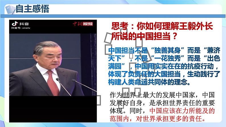 这是一份人教部编版九年级下册中国担当课文配套ppt课件,共34页。PPT课件主要包含了贡献中国智慧,合作探究等内容,欢迎下载使用。