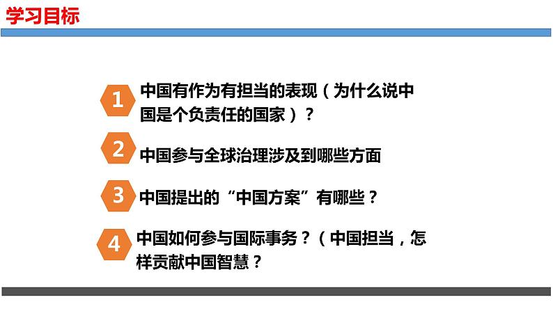 这是一份初中政治 (道德与法治)人教部编版九年级下册中国担当完整版ppt课件,共28页。PPT课件主要包含了积极有作为,学习任务一等内容,欢迎下载使用。