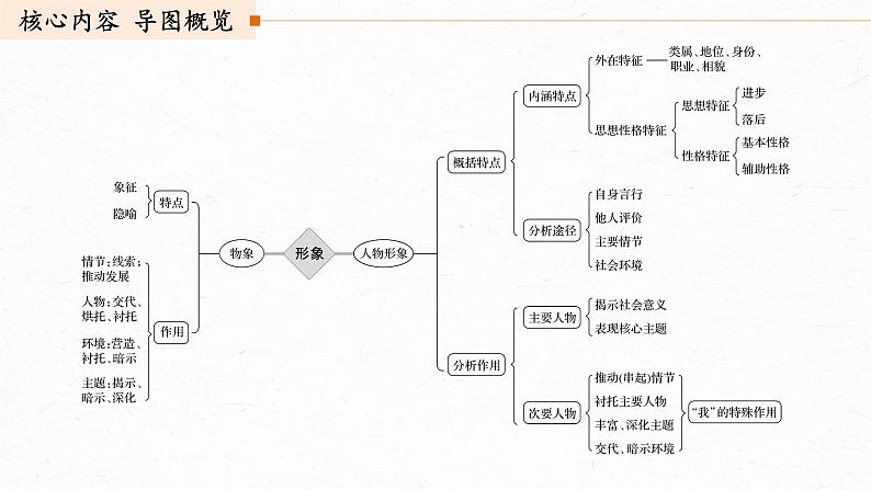 这是一份新高考语文第3部分 专题16 Ⅲ 核心突破 突破四 因形悟神,立象尽意,精准分析概括形象课件PPT,共25页。PPT课件主要包含了核心内容导图概览等内容,欢迎下载使用。