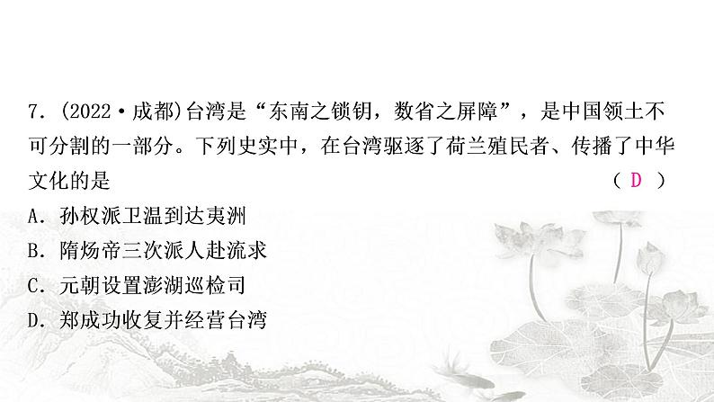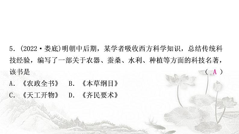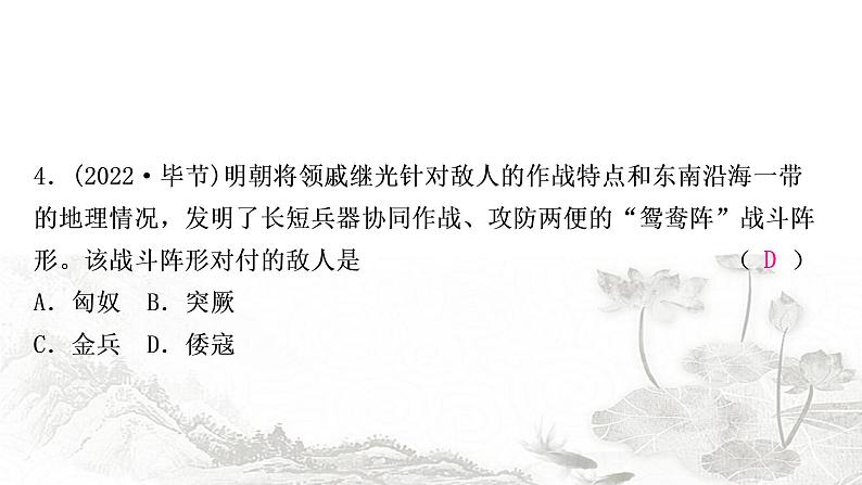 中考历史复习中国古代史第七单元明清时期:统一多民族国家的巩固与发展作业课件