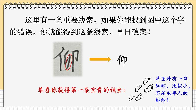 这里有一条重要线索,如果你能找到图中这个字的错误,你就能得到这条线索,早日破案!