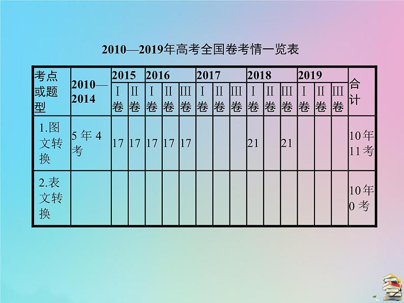 展开2010—2019年高考全国卷考情一览表
