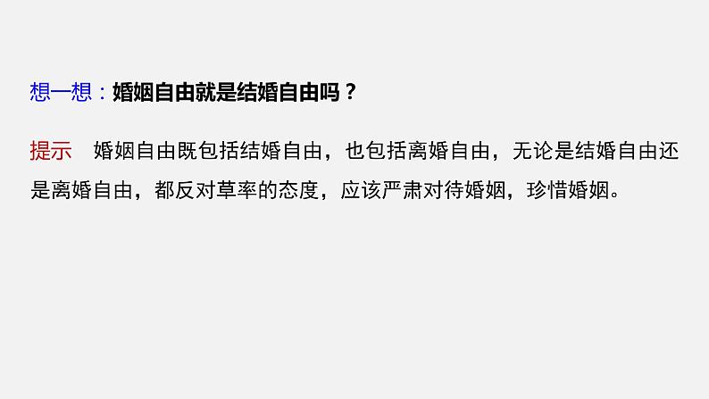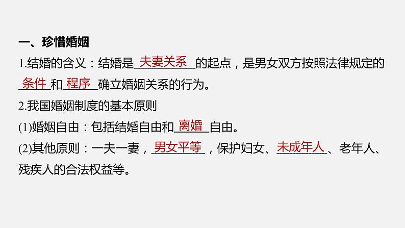 高中政治 (道德与法治)人教统编版选择性必修2 法律与生活第二单元 家庭与婚姻第六课 珍惜婚姻关系法律保护下的婚姻教学演示课件ppt