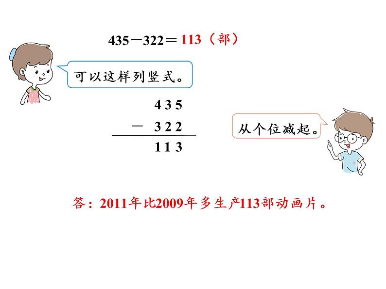 答:2011年比2009年多生产113部动画片。