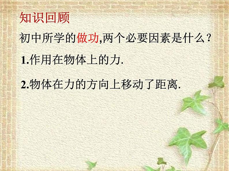1.作用在物体上的力.2.物体在力的方向上移动了距离.