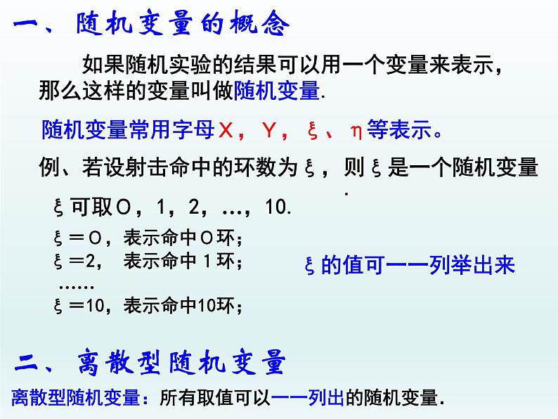 离散型随机变量:所有取值可以一一列出的随机变量.