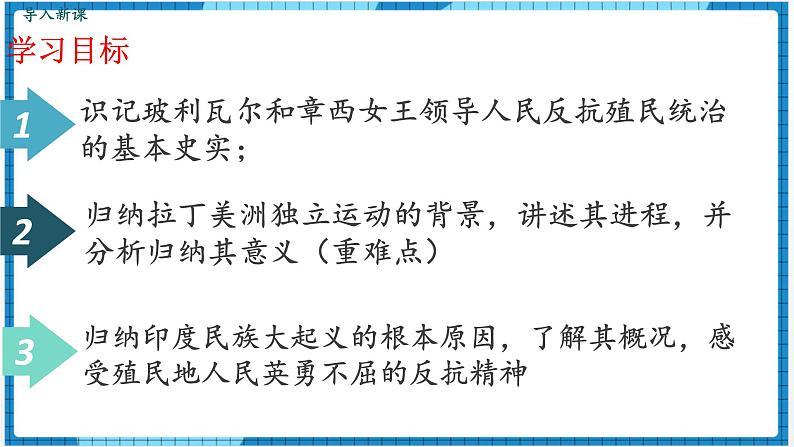 展开识记玻利瓦尔和章西女王领导人民反抗殖民统治的基本史实;