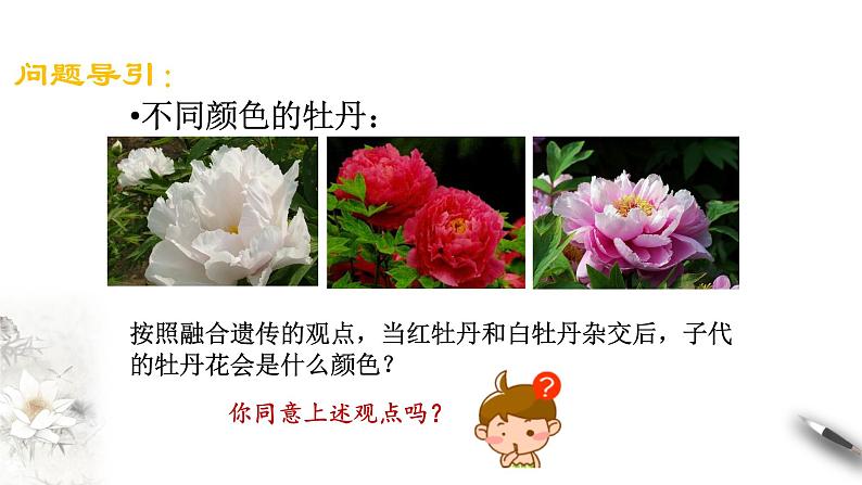 不同颜色的牡丹:按照融合遗传的观点,当红牡丹和白牡丹杂交后,子代的牡丹花会是什么颜色?