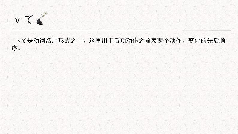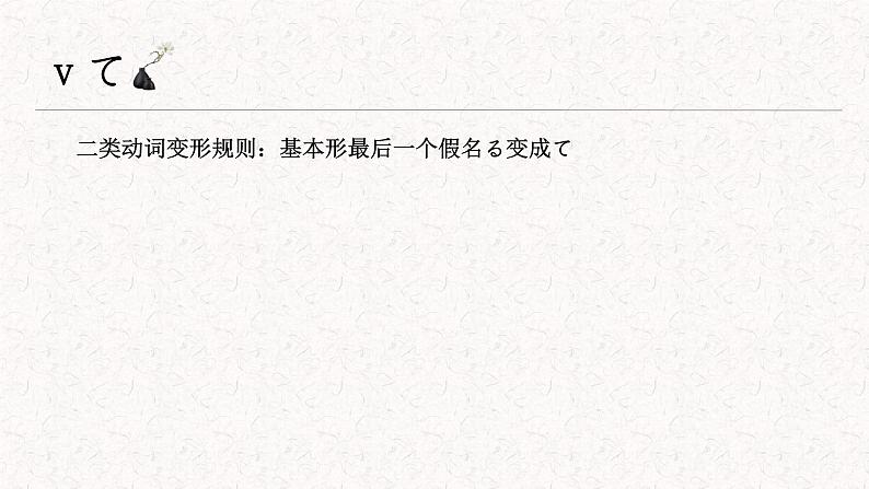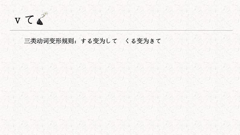 人教版八年级全册第一单元课次1会话:工場見学课前预习ppt课件: 这是一份人教版八年级全册第一单元课次1会话:工場見学课前预习ppt课件,共12页。PPT课件主要包含了意志形,变化规则,基本型词尾る变よう,Vうと思う,表示第一人称的意志,我打算下周去上海,たい和Vう,我打算借两本历史书,我想快点做完作业,Vていく等内容,欢迎下载使用。