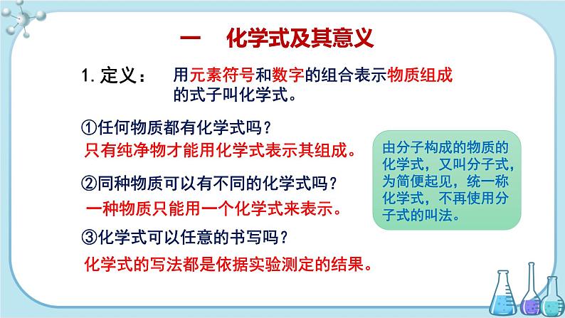 由分子构成的物质的化学式,又叫分子式,为简便起见,统一称化学式,不再使用分子式的叫法。