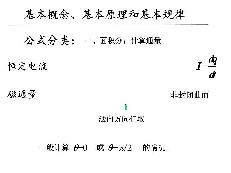 这是一份初中物理北京课改版九年级全册二、磁场评课课件ppt,共51页。PPT课件主要包含了公式分类,恒定电流,面积分计算通量,磁通量,非封闭曲面,法向方向任取,电流的连续性方程,封闭曲面,法向方向指向外,磁场中的高斯定理等内容,欢迎下载使用。