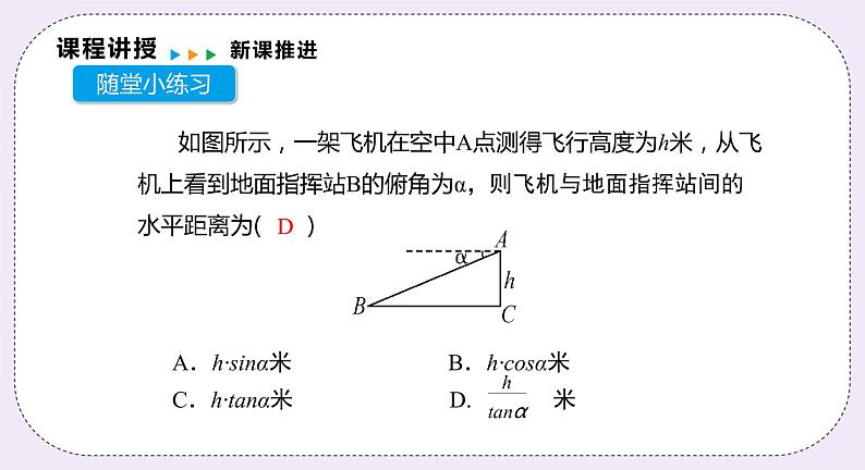 A.h·sinα米 B.h·csα米C.h·tanα米 D. 米
