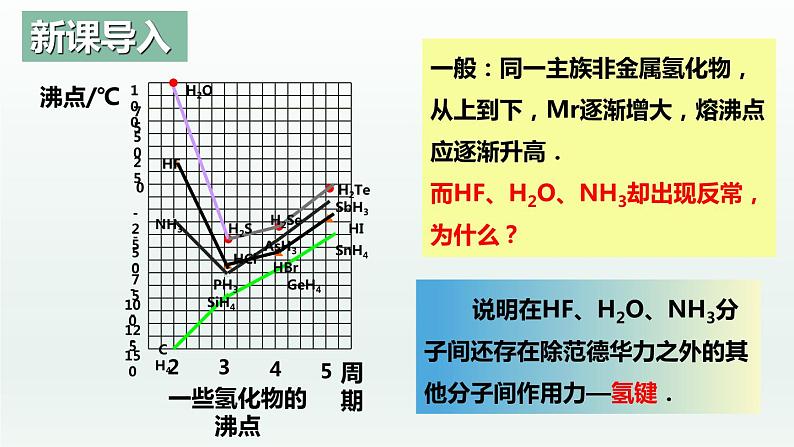 说明在HF、H2O、NH3分子间还存在除范德华力之外的其他分子间作用力—氢键.
