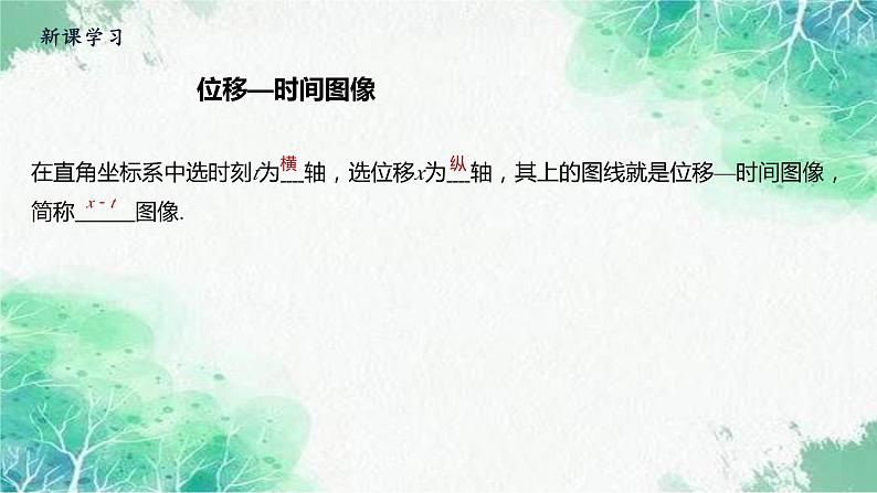 在直角坐标系中选时刻t为 轴,选位移x为 轴,其上的图线就是位移—时间图像,简称 图像.