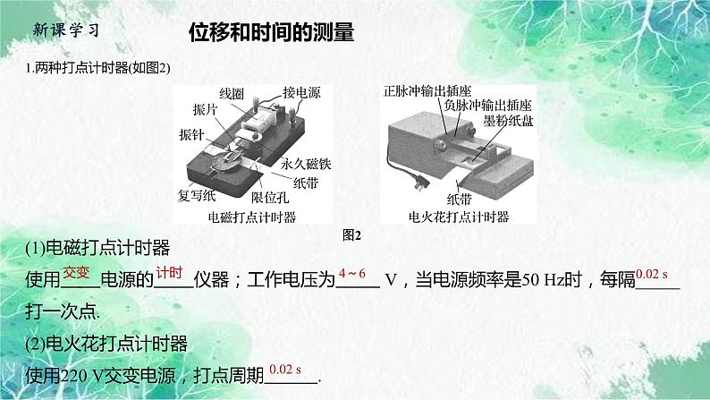 这是一份物理必修 第一册第一章 运动的描述2 时间 位移评课ppt课件,共19页。PPT课件主要包含了时间+位置,时刻与时间间隔,固定打点计时器,安装纸带,取下纸带等内容,欢迎下载使用。