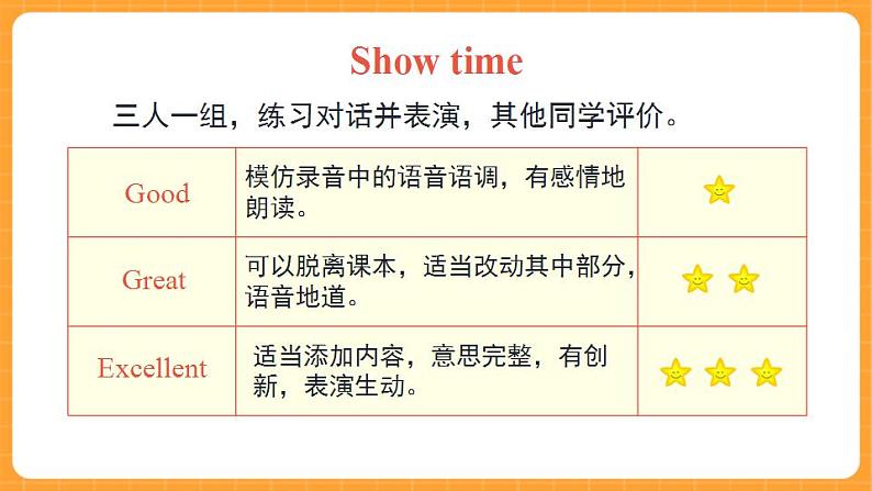 这是一份人教精通版三年级上册Lesson 11一等奖ppt课件,共17页。PPT课件主要包含了Let’s sing,Review,Show time,Just learn,glue,marker,Practice ,大小声等内容,欢迎下载使用。