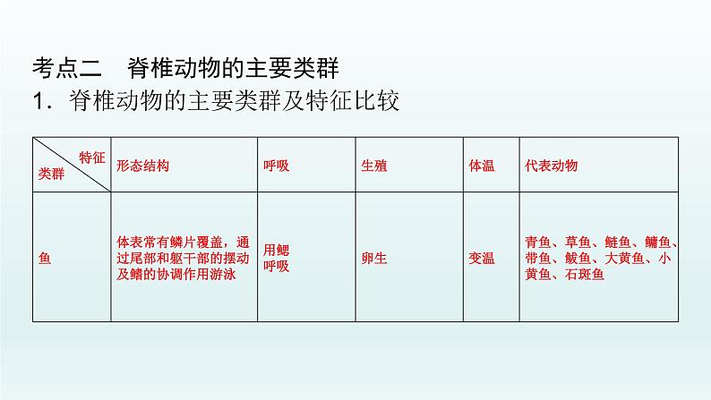考点二 脊椎动物的主要类群1.脊椎动物的主要类群及特征比较