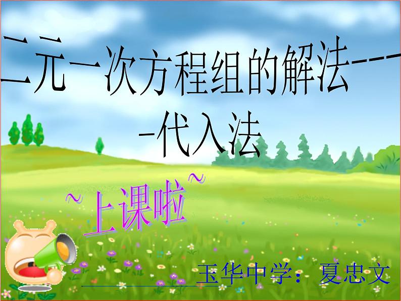 2、用这个一次式代替另一个方程中相应的未知数,得到一个一元一次方程,求得一个未知数的值