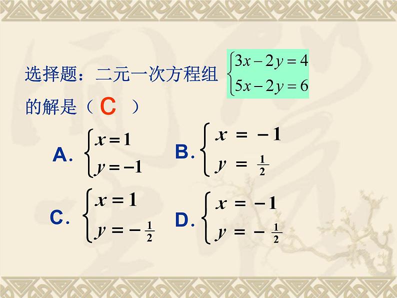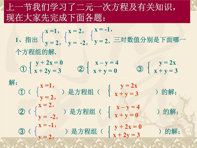 1、指出 三对数值分别是下面哪一个方程组的解.