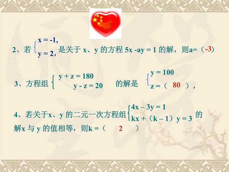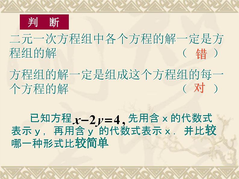 上一节我们学习了二元一次方程及有关知识,现在大家先完成下面各题: