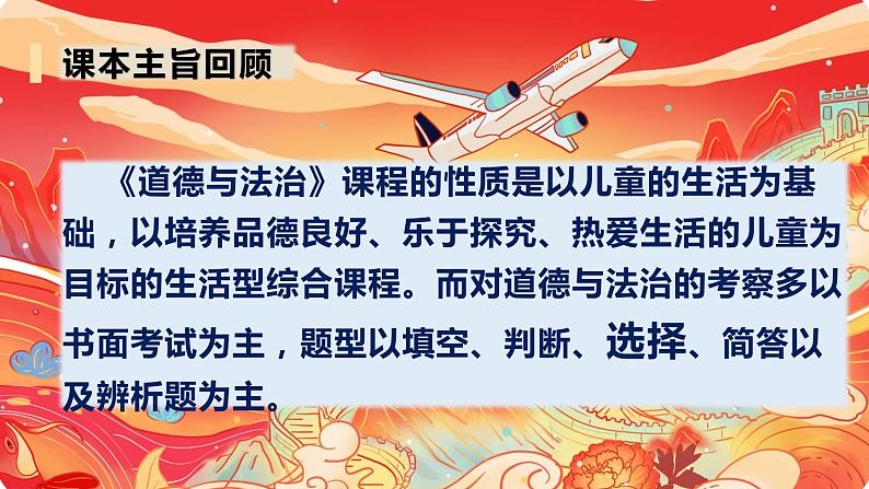 部编版二年级道德与法治下册期末复习课件:第三部分选择题专项复习: 这是一份部编版二年级道德与法治下册期末复习课件:第三部分选择题专项复习,共19页。PPT课件主要包含了课本主旨回顾,选择题,选择题答题要点,一般常考选择题,主观类选择题,变式选择题等内容,欢迎下载使用。
